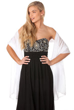 Beautiful Silky White Chiffon Wrap Stole Shawl Scarf For Weddings Bridal Bridesmaids, Brides, Evening Wear Balls Proms & Races. Light and silky texture creates a flattering silhouette. Be the bell of the ball with this beautiful wrap. Washable and iron on cool heat. Colour - White. Also available in 17 other beautiful colours.